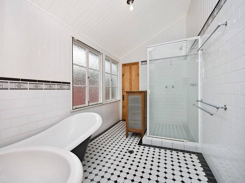 Three bedrooms (two with built-in wardrobes), a sunny sleepout and modern checker-board tiled bathroom featuring a traditional claw bath complete the upper level.