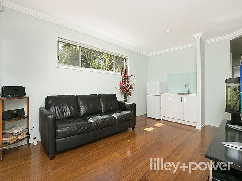 The space also boasts a separate kitchenette for entertaining – a clever addition for those seeking split level living configurations or hosting guests.