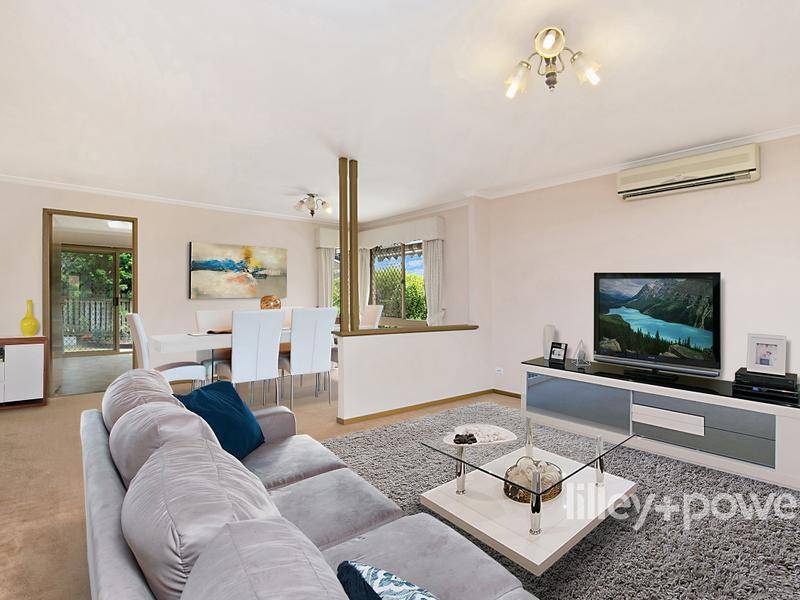 This superb property situated in a private and peaceful estate community is the perfect place to call home. Featuring spacious and immaculately maintained interiors throughout this charming home has been cleverly and thoughtfully designed to maximise space and to incorporate its private and tranquil setting. The living areas include a large air-conditioned lounge room adjoining the partitioned formal dining space. The separate eat-in kitchen provides an abundance of storage space and an excellent area for informal dining. The kitchen is ideally located with immediate access to the outdoor covered patio, providing the perfect proximity for alfresco dining and entertaining.