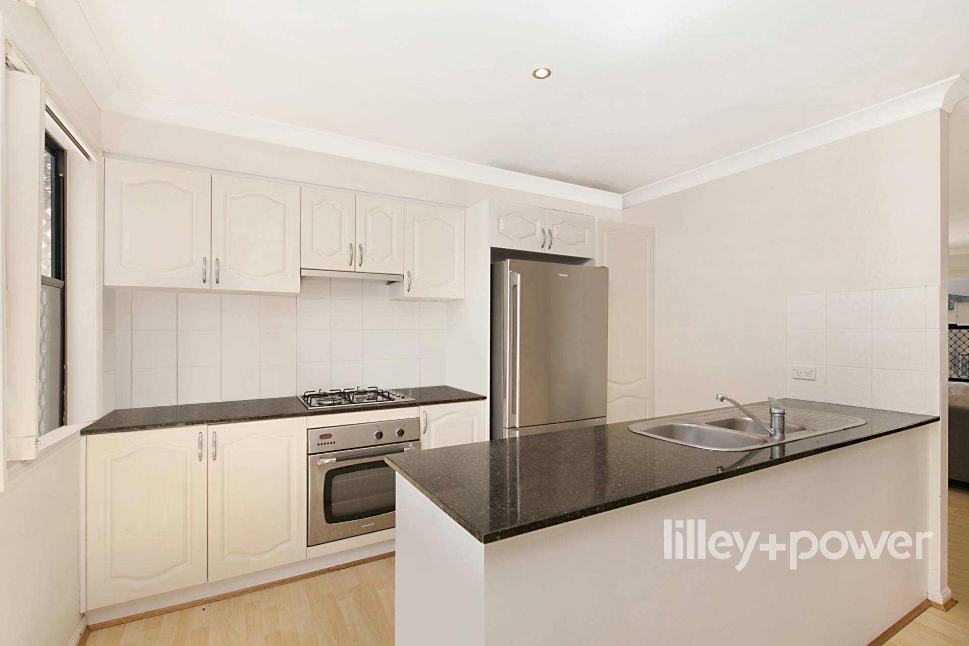 The living area provides a large lounge and dining space adjoining the entertainer’s kitchen complete with gas stove and an abundance of space.