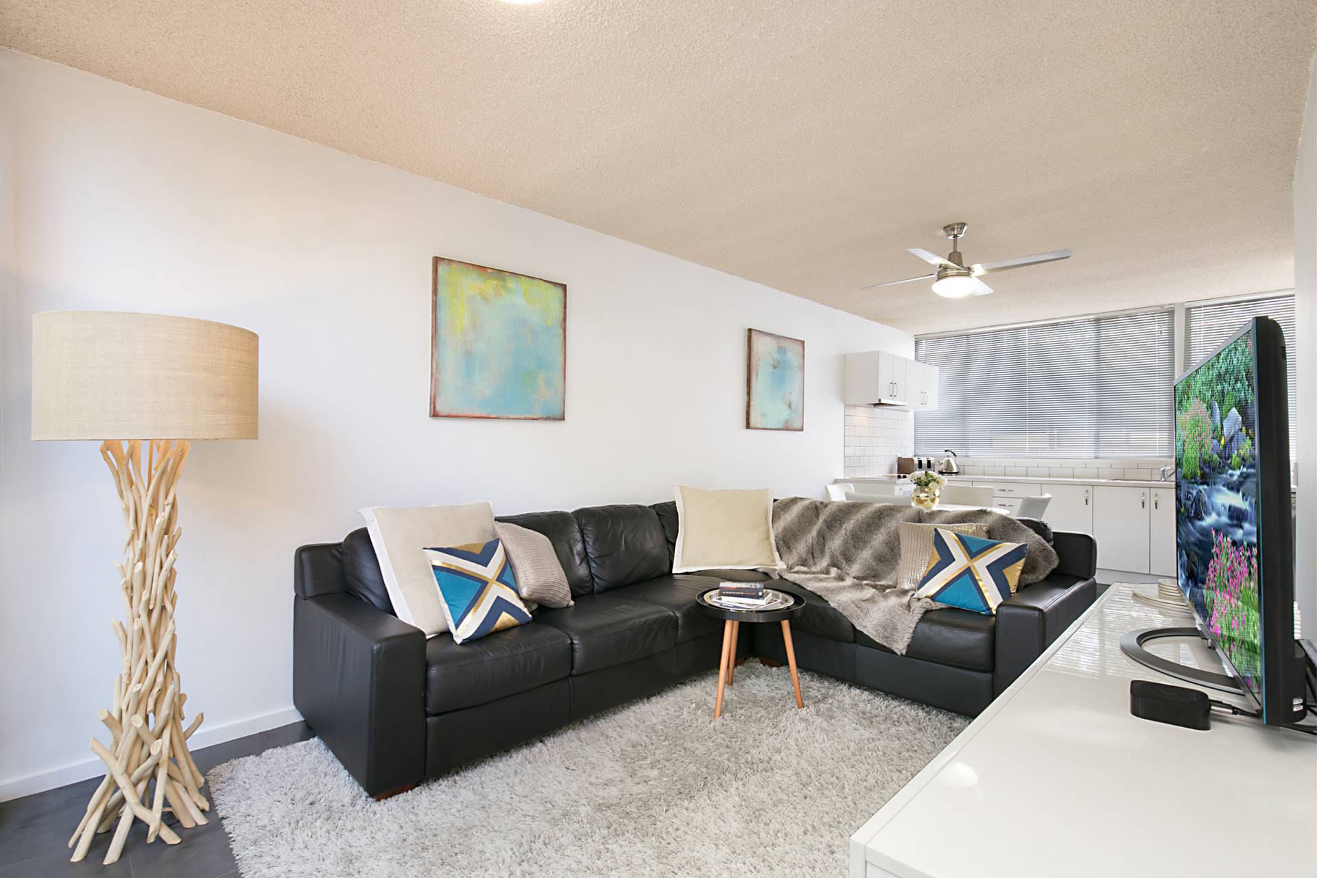 The upper level features two bedrooms both with a built-in wardrobe, including the large master bedroom with a picturesque elevated view out from full-width windows making for a beautifully bright area.