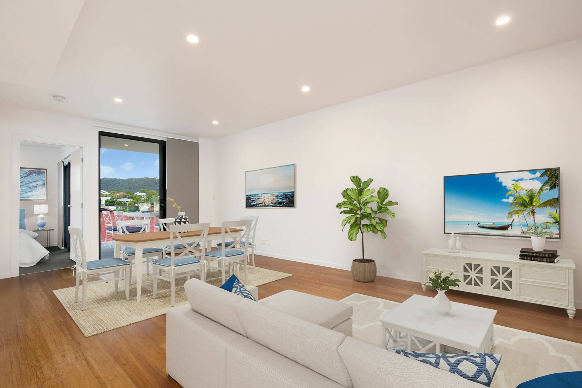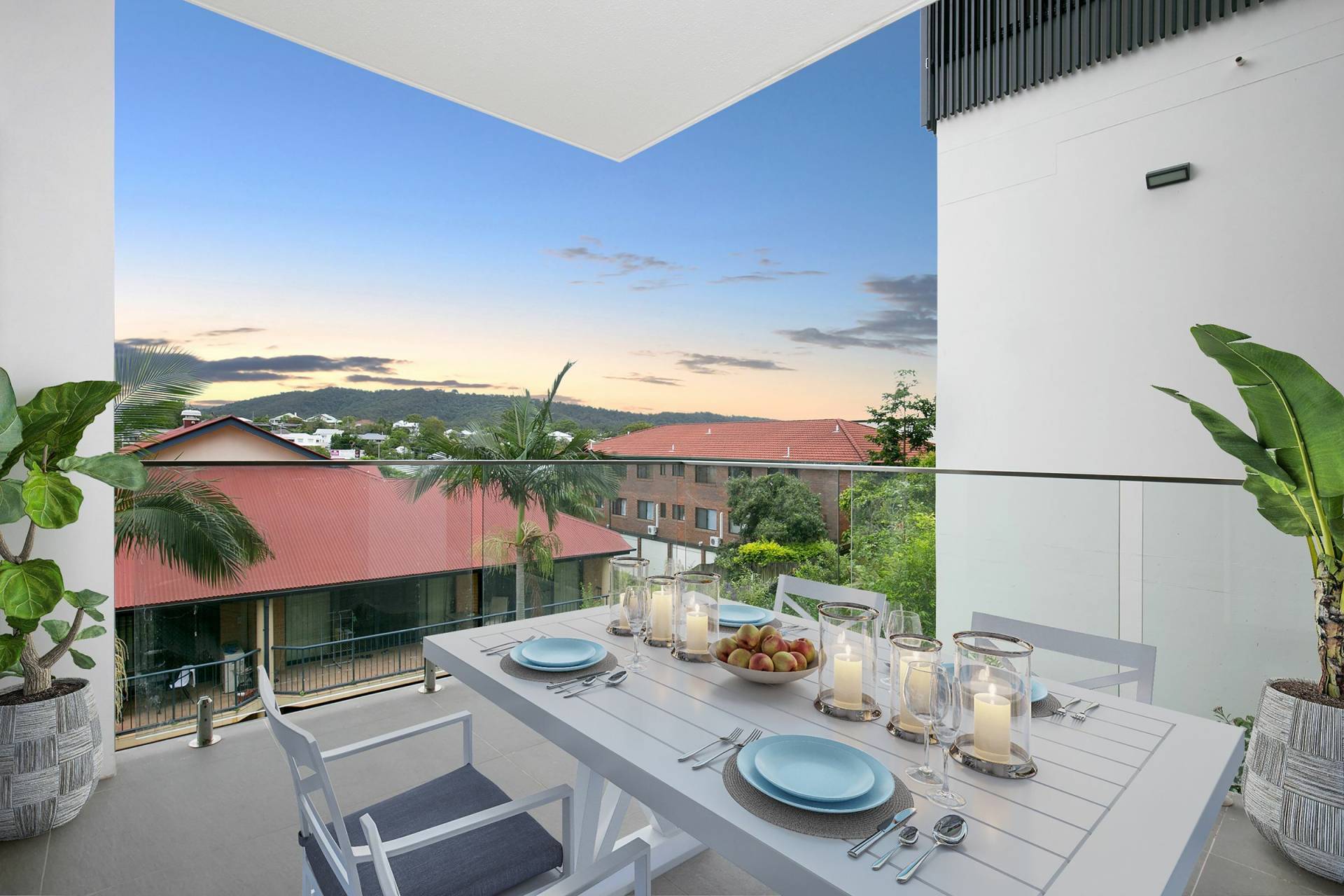The property’s impressive combination of highly sought-after features includes an elevated and private outlook towards Mt Cootha, quality bamboo flooring, a large covered balcony, and a spacious open plan living complete with custom cabinetry including a purpose-built wine fridge compartment.