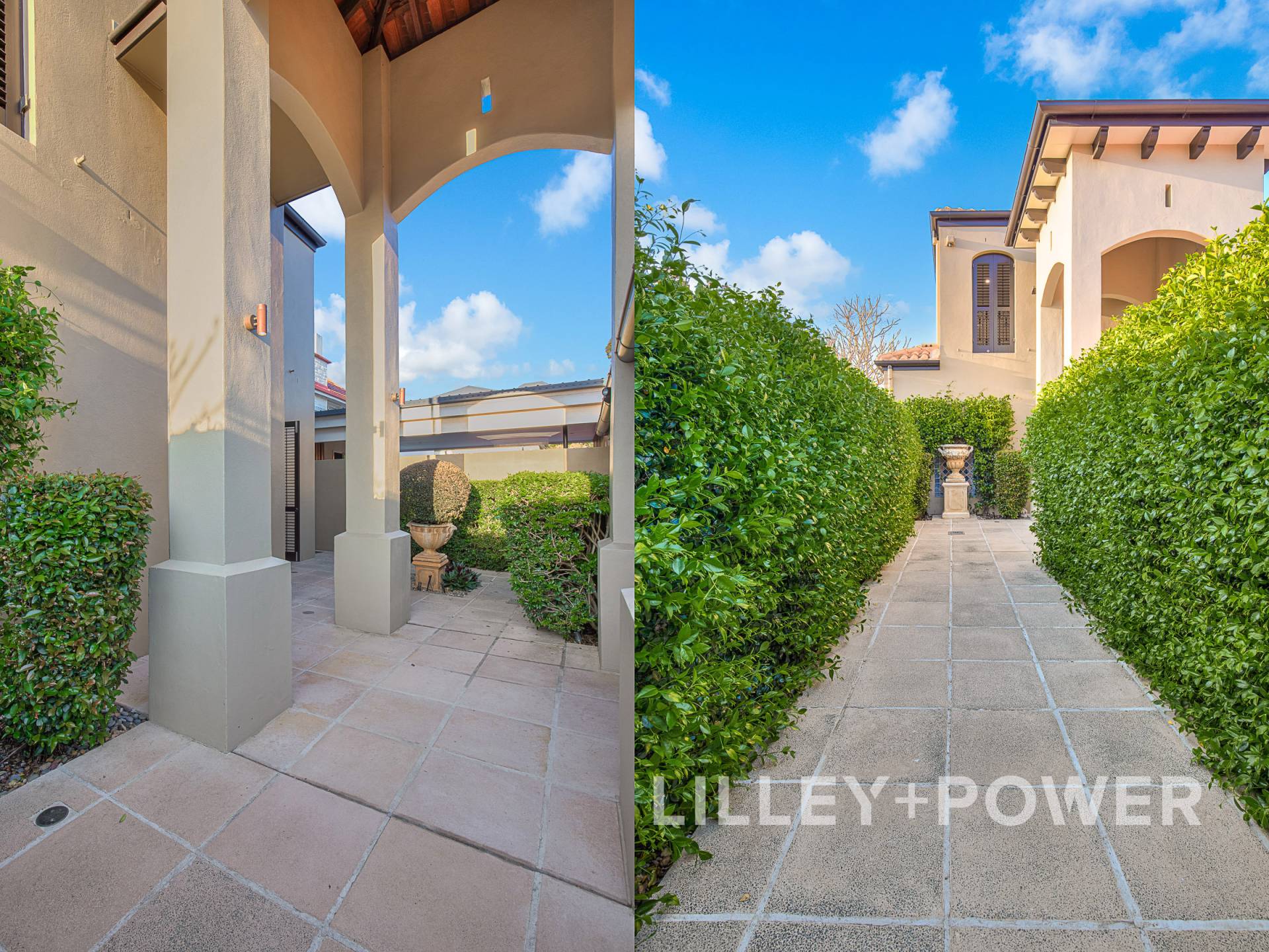 Immaculately landscaped grounds embrace the gracious residence and extend from the property’s stately King Arthur Terrace entrance, right to the water’s edge.